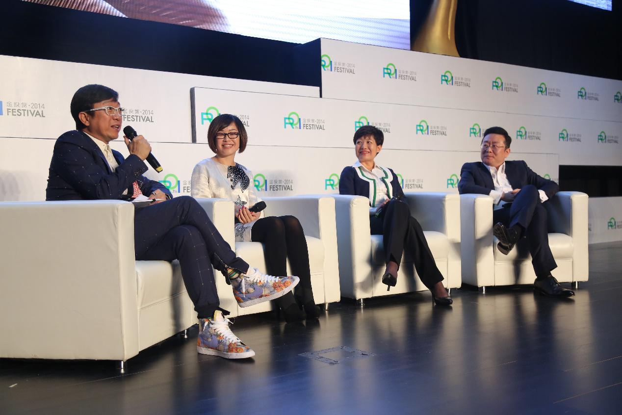 圆桌沙龙(左起主持人曹启泰、网易门户市场部总经理李安、尼尔森中国区媒体业务副总裁郭岚、青岛啤酒品牌管理总部副总经理马捷)