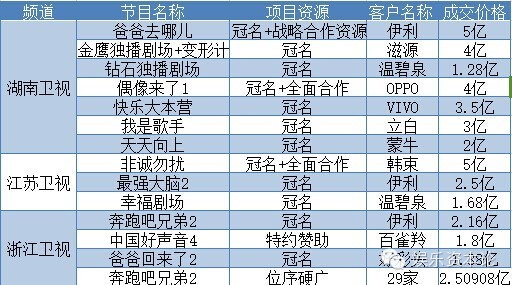 近几日,江苏卫视、浙江卫视、湖南卫视接连举行广告招标会,其中《奔跑吧兄弟2》2.16亿、《我歌3》3亿、全新节目《偶像来了》4亿,《爸爸3》更是高达5亿。虽然这其中的具体价值有业内有不少争议(文章最右下角点阅读原文,看《揭秘丨“爸爸3”冠名5亿实则3亿?》),但无论是3亿还是5亿,都远远要超过2014年的整体成绩。