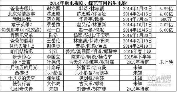 这部电影之后,还涌来了《爸爸去哪儿2》、《爸爸的假期》、《奔跑吧!兄弟》等同类电影,都挤在春节档和贺岁档,意欲复制《爸爸》的成功。