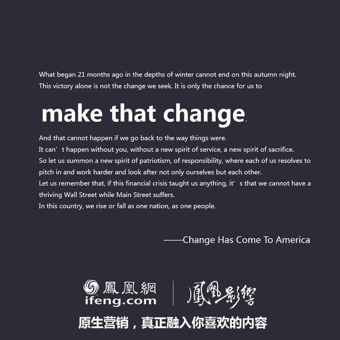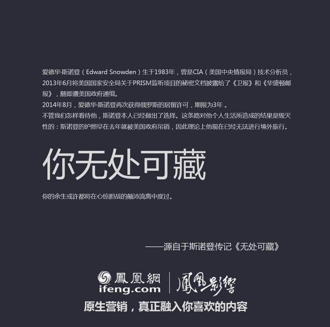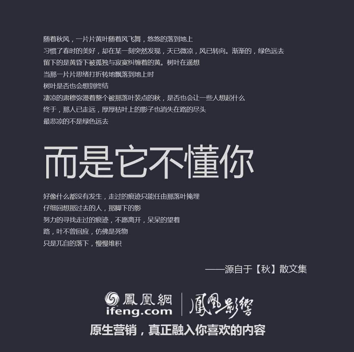 都是在文案上动手脚,易信是把微信的原版改成了“否定句”,凤凰网则是玩起了“扩写”,任性地告诉我们什么是“真正的原生营销”。