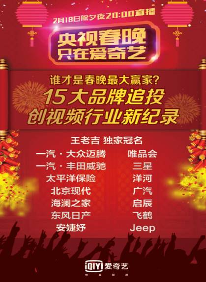 春晚吸金碗 :15家广告主扎堆爱奇艺!