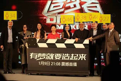 这是北京卫视综艺节目《造梦者》发布会上TOP君拍到的图片。当天共有四位节目中的导师出席发布会,可能是TOP君的这张照片拍得效果不好吧,姚晨和洪晃的年龄都没有测试出来,还好姜文和刘嘉玲的测试年龄出来了。只是姜文真的只有38岁吗?