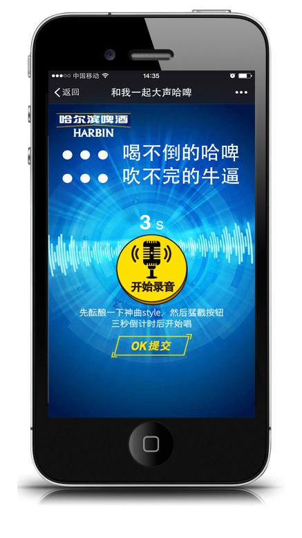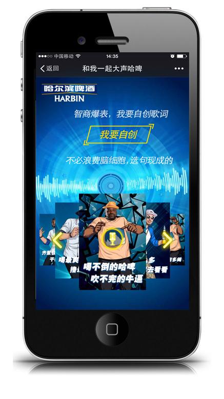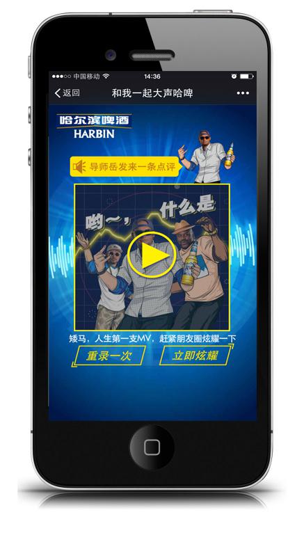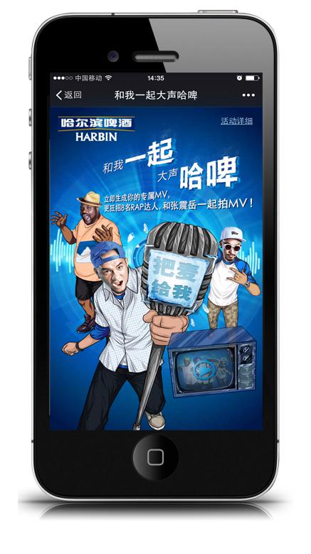 5月28日,以创新闻名的互动营销公司VML上海为哈尔滨啤酒打造的“和我一起大声哈啤”微信互动正式启动。在互动中,录制自己创作的rap,生成与明星的饶舌合唱,并打造成专属的动画MV,更可以听取到明星点评!届时还将狂招民间rap达人,有机会和张震岳一起拍MV!