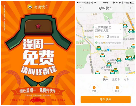 从轮番轰炸直钻瞳孔的楼宇广告,到广播里洗脑神曲般的雷锋歌,再到一批在大夏天里带着雷锋帽的可爱司机,最后落回到每周一滴滴快车屏幕上密密麻麻的雷锋车、雷锋脸,在过去的这两周里,你难道没有被雷锋吗?