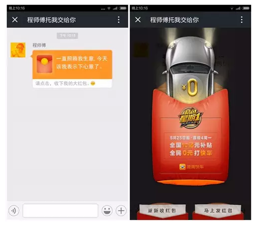 在首周桔色星期一之前,一个“程师傅托我送给你送红包“的H5风靡朋友圈。滴滴在这个H5中所表现出来的落落大方的调侃气质与幽默风采值得点赞。作为打车送红包的“始作俑者”,滴滴快车这次所给出的 “史上最大的红包“颠覆了红包的一贯概念——因为免费,0元才是最大。