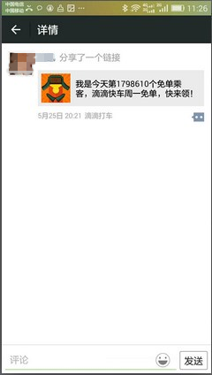 在活动中,每个乘坐了快车的用户都会分享出一个大红包到朋友圈中。而这个大红包的标题,会实时展示此次乘坐是全国累计第多少位乘坐快车的用户。最终5月25日当天大红包的累计数字停留在215万。滴滴通过红包产品向所有网友实时公布活动数据。全民围观的感受怎么样?朋友们都坐了,你还不坐?