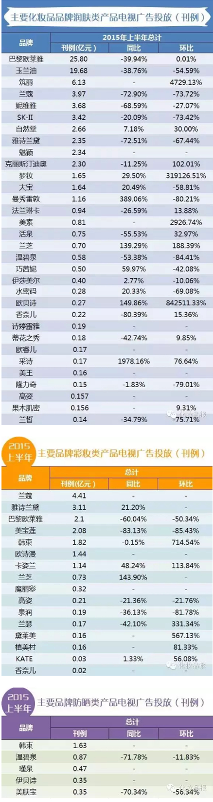 看完了整体化妆品广告的趋势,是不是很想了解具体品类的化妆品广告投放?详见附表: