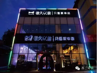 还有一个在北京挺火的烤串连锁店,名字很好玩,叫做“很久以前 只是家串店”: