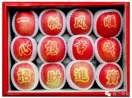 是的,在给产品“印有趣文案”这个策略上,民间营销高手也早已领先了,来看看这些身价翻倍的印字苹果: