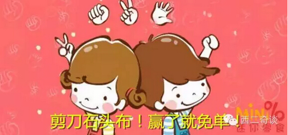 这是某零食网购品牌策划的一个有趣的活动,叫做“石头剪刀布!赢了就免单!”:当递送人员送货上门时,你可以跟他玩一把剪刀石头布,三局两胜,你赢了就免单。那天碰巧目睹了我的一个同事跟他们快递员玩的场景,非常好玩。这个策划简单、巧妙,实质上就是把司空见惯的“五折优惠”变成一种很有意思的玩法。