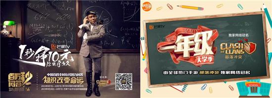 此外,部落冲突还连续获得了芒果TV《百万秒问答》的独家冠名和湖南卫视《一年级·大学季》的独家网络冠名。