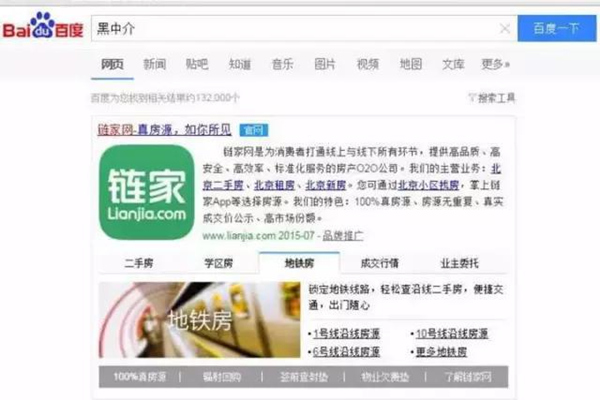 先是填上掉下个大馅饼。7月份的某一天,不管你在百度搜索什么词,跳出来的第一位都是链家的广告;搜索竞品亦然,一个小时后恢复正常。微博上的讨论炸开了锅,不明所以的群众以为“百度被黑客攻击了”,“链家到底给了百度多少广告好处费”,“这明明是链家要收购百度的节奏”,但是百度方面辟谣说是bug,呵呵,你以为我会信?