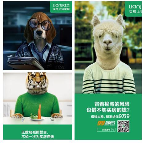 链家学电商造节,搞了个“99抢房节”,做了一批动物形象海报,吐露买房者的心酸史,相信你在电梯里看到过,据说还吓哭过小朋友。