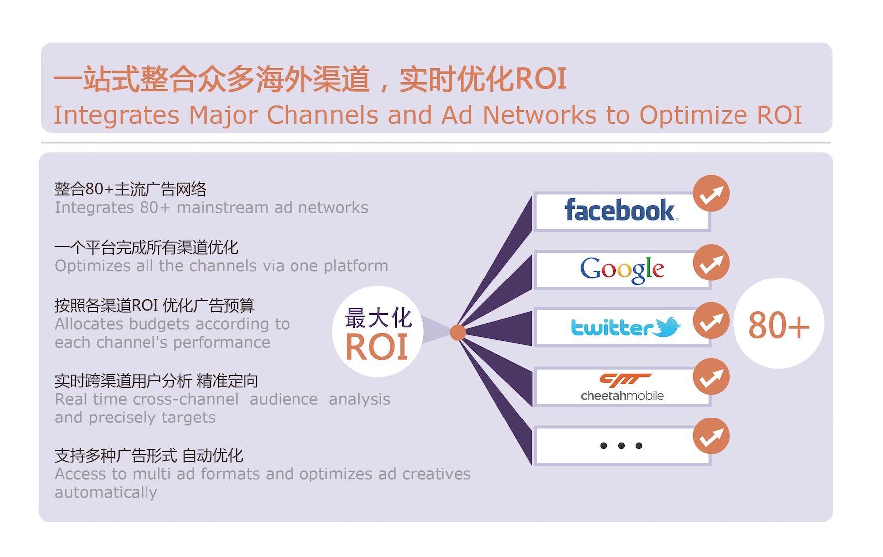 相较Facebook,Google和Twitter自有的广告投放平台,通过API对接的PerforMad不仅能够实现三大渠道自身的优化功能,还能为不同的广告主提供客制化的解决方案。