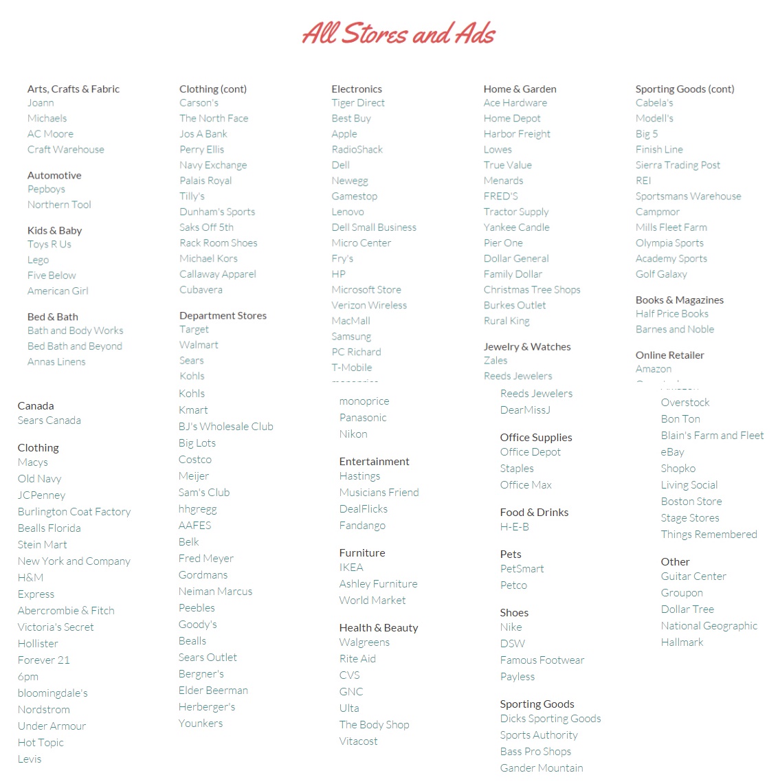 先奉上2015年美国参与黑五的热门百货以及品牌名单(虽然跟我们没关系,但找找自己喜欢的品牌也是蛮幸福的)。