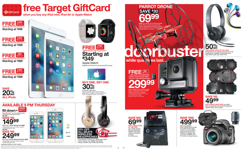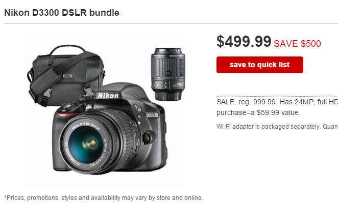 跟Macy’s一样,Target明天6点开门,它家的商品明显丰富些,折扣给的也是饱含诚意,尼康这款单反直降500美元!有了免费Target礼物卡,买部分苹果产品直降100美元。