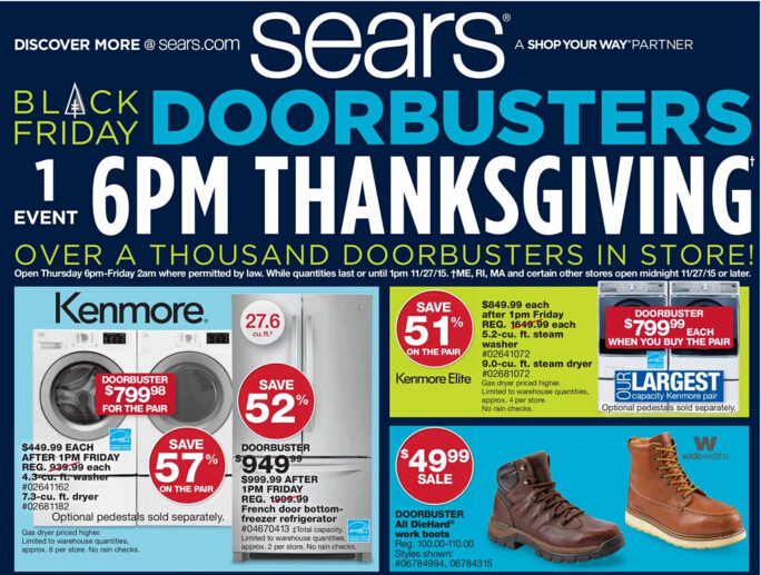 2012年,沃尔玛和其他的一些零售商直接将它们部分商铺的开业时间提前到了感恩节当天下午8:00(有些州的法律禁止这样做),开了黑色感恩节的先河。去年,JCPenney, Best Buy 和 Radio Shack 在内的百货又将时间提前,决定在感恩节当天下午5点开启黑五,为了防止恶性竞争,避免顾客分流,Target, Walmart, Belk和 Sears 则推迟一小时接客。