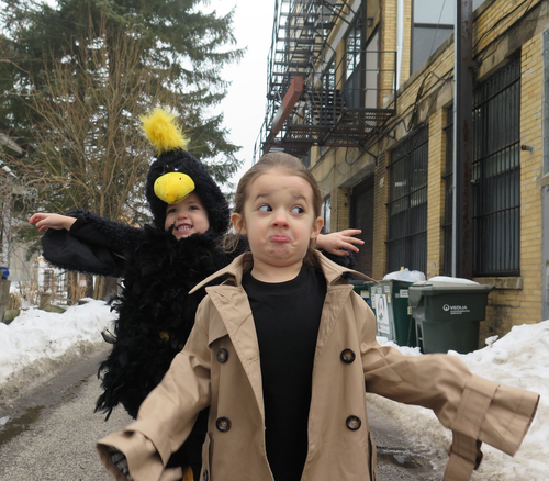 据Maggie透露,小妹Sadie特别中意上图中这套鸟人戏服,即使衣服上的毛都掉光光了她每天还是会穿。