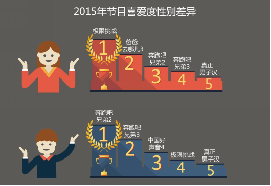 AdMaster数据显示:女性更加喜欢拥有“萌娃”、“男神”、“搞怪”、“旅行”标签的节目,而男性则更偏好“极限”、“户外”类。