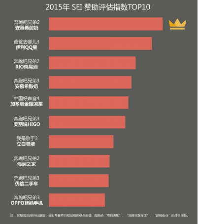 以上内容节选自《AdMaster SEI 2015年度分析报告》,该报告整理了2015年SEI深度监测的近50个综艺节目或网络自制节目,覆盖湖南卫视、浙江卫视、江苏卫视、东方卫视、爱奇艺、腾讯等国内主流电视台和视频网站,涉及赞助商品牌将近300个。2016年AdMaster SEI将持续关注综艺市场风云变化,为品牌赞助效果提供最全面的评估,敬请期待。
