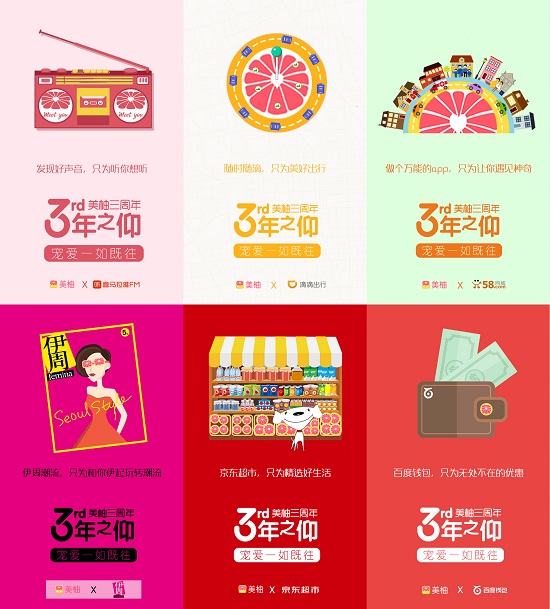 那么,当一个年轻的品牌,不像上述所列举的奔驰、宝马和餐饮界大亨麦丹劳,在没有足够品牌积淀和受众认知度的情况下,周年庆又可以聊什么?移动互联网品牌美柚似乎在本月给出了一个可探讨的思路,它不谈成长,也不谈成绩,而是联合了数十家品牌,一起聊聊自己所专注的事情。