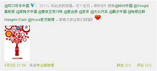 可口可乐127周年庆生感谢微博