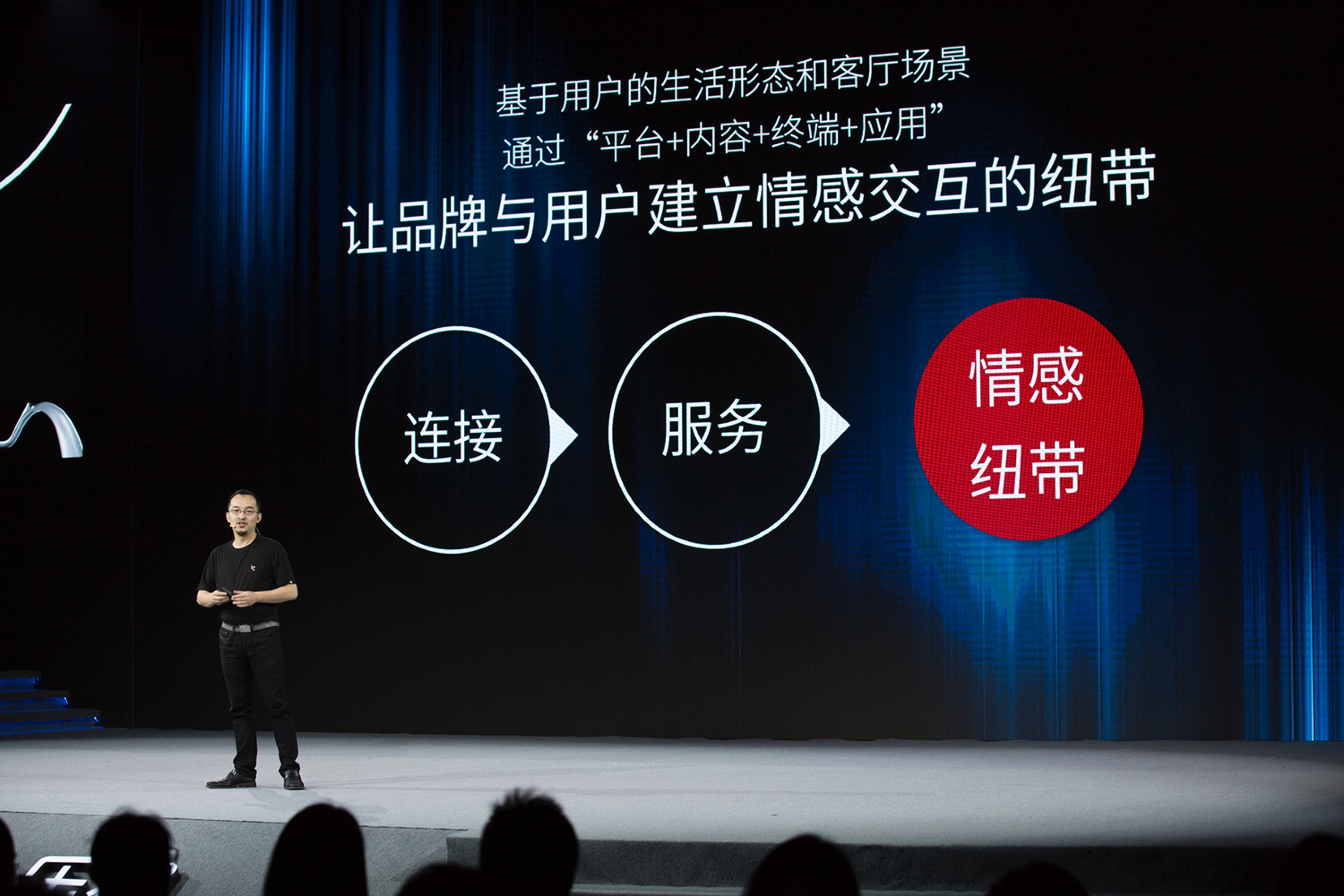 张旻翚用1个VCR详细介绍了乐视大屏全新的C³营销体系,通过客厅场景营销服务,打通人际壁垒,以用户为核心,形成开放式闭环。