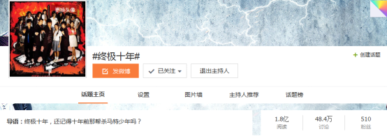 而在外围传播上,终4不但紧贴热点,也不忘创造热点。剧目开播不到1周,终4的“盇峚罫”热点一时间就被诸多大号自发传播,时趣借势发力,通过官微和外围大号的合作,持续增大“盇峚罫”曝光度,将声量拉至了最大化。终4上线的2个月时间里,在一整套有针对性的营销策略支持下,终4的话题多次登上热搜榜。终4大结局时,#终极十年#的话题tag因触及了粉丝们的终极情怀而引发了大量的粉丝UGC,最终也获得了近2亿的阅读量。