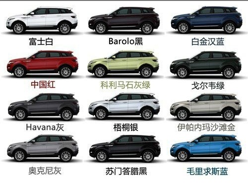 比如,路虎揽胜极光的这些颜色名称,你能看懂的有多少?