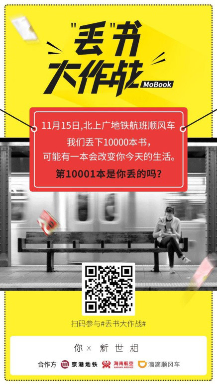 虽然新世相的丢书活动走出了地铁,承包了海陆空,书的数量也从100本翻倍到10000本,还加入了时髦的社交分享元素,但它的创意母体其实还是艾玛丢书事件。