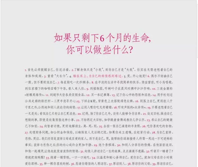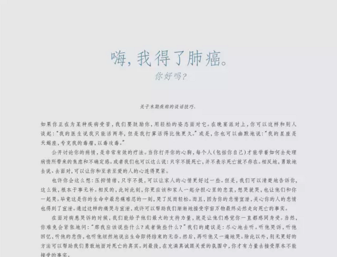 PS:“绝症”这个主题,很容易走向煽情和鸡汤,一不小心,还会洒起狗血。这很可怕。这套广告则有些严肃,甚至有些悲观。但这是面临绝症时最真实最客观的现实。它在冷静的分析背后,依然给出了最理性也最充满人性关怀的解决方案,难能可贵。