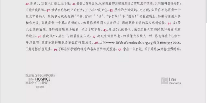 48.上网,www.lifebeforedeath.org.sn或拨18003336666, 了解慈怀护理服务。
