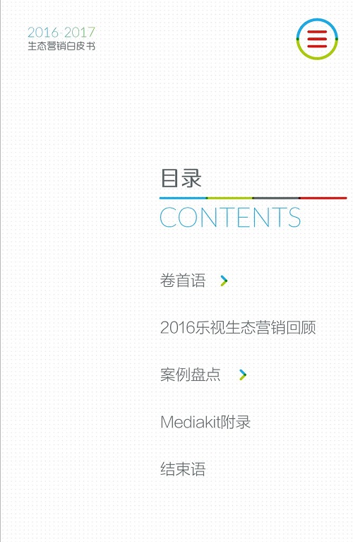 至于《白皮书》的10大案例中,乐视生态营销的商业价值如何体现?广告主如何看待这些有章可循的方法论?生态营销对于广告主和营销时代发展的意义又有几何?更多鞭辟入里的见解, 2月底发布,敬请关注。