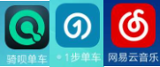 骑呗单车、1步单车酷似网易云音乐。