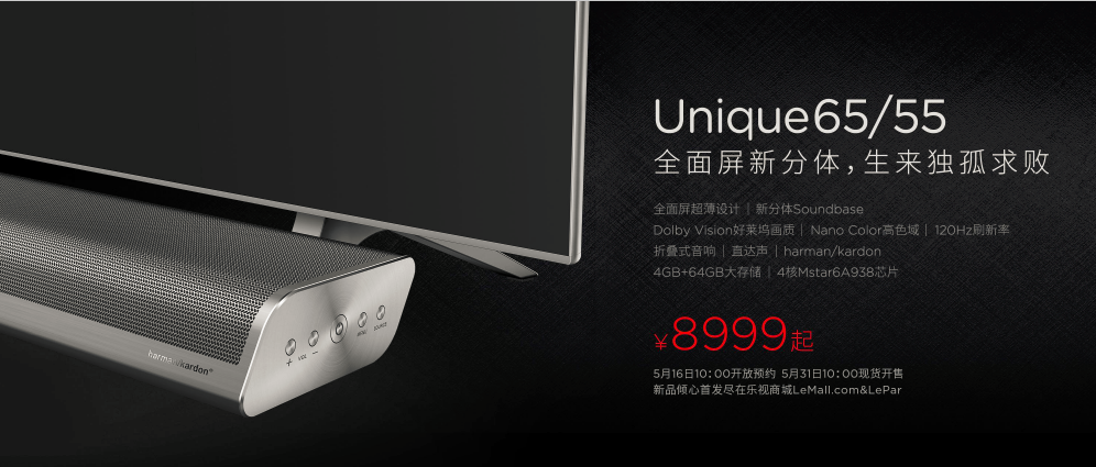 乐视推全面屏新分体Unique65/55 生来独孤求败只为新科技追求者