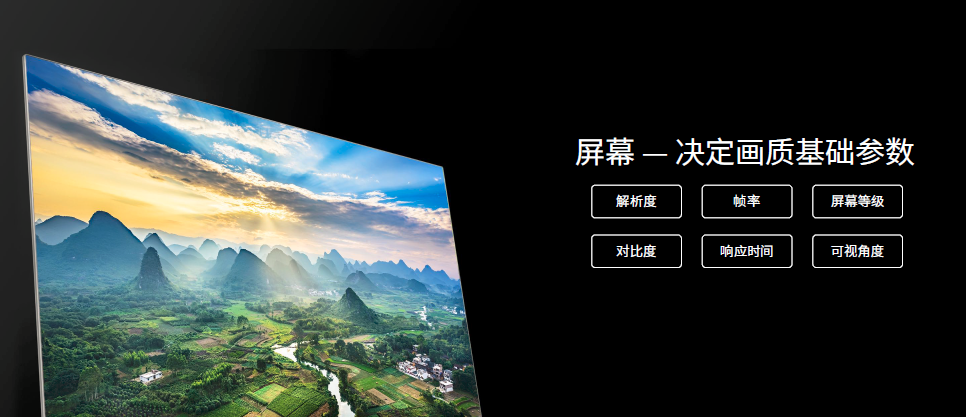 屏幕作为电视机主要组成部分,对画质的影响是非常重要,屏幕的很多硬性参数都是一个好画质的基础保障,比如,解析度、帧率、视角、响应时间等等。
