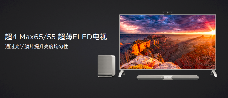 至于提升屏幕亮度和亮度均匀性方面,DLED直下式背光设计最常规做法就是增加LED灯带密度,优化二次光学透镜实现均匀混光,也可以印刷扩散板和反射片,在配合软件算法调试,来提升亮度均匀性;而ELED侧入式背光,可通过优化导光板网点排布和制作工艺的方式来改善亮度均匀性。另外,对于DLED和ELED都可以通过增加光学膜片的方式来提升显示均匀性。乐视超4 Max65/ Max55,就是采用ELED的背光设计方案,并通过增加光学膜片技术,显著提升亮度和均匀性。
