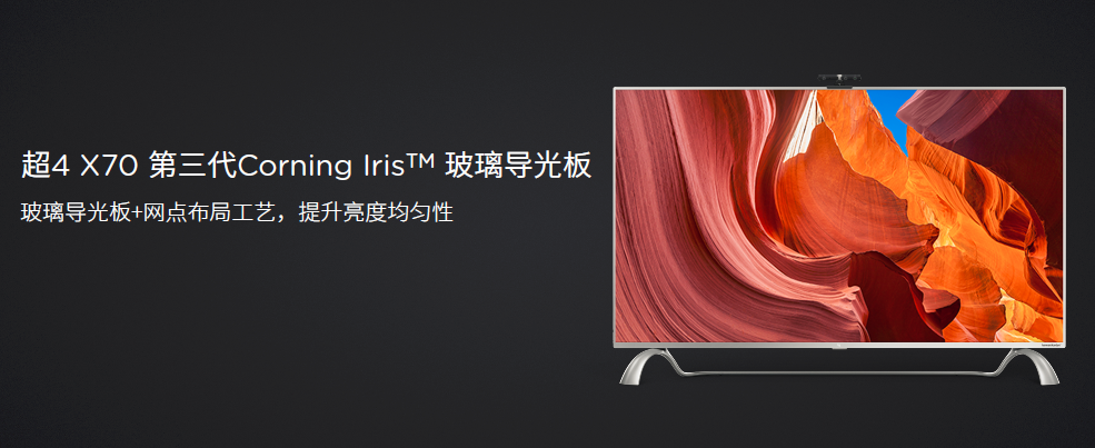 此外,背光系统中还有另外一个关键器件,导光板。传统电视多采用塑料导光板,具有敛光性好、光效好、成本低等优点,但塑料热膨胀大,刚性不足,在超薄超窄上受到较大限制;而新的玻璃导光板方案,具有热膨胀小和刚性强度高优点,可以做大尺寸超薄产品。乐视超4 X70率先采用第三代Corning Iris Glass玻璃导光板,并在玻璃导光板上增加光学涂层技术,弥补玻璃导光板均匀性不好弱点,提升亮度均匀性,将电视行业导光板设计技术推上新的台阶。