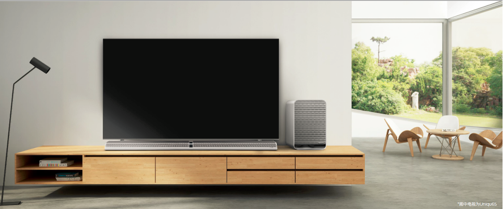 除旗舰级画质,新分体音响在原有Max系列分体音响的基础上,Soundbase音腔体积增大70%,提供更浑厚的声场能量。Soundbase同样采用直达声扬声器设计,六大扬声器单元外加低音炮,总计7单元电子分频120W立体声音响,主动式电子分频,全频响平滑自然远胜高保真家庭影院音响。并经过金耳朵主观盲评,哈曼卡顿专家团队设计审核和专业认证,搭配杜比音效(Dolby Audio)解码和后处理技术,不仅为用户提供丰富、清晰且震撼人心的音效,同时让看电视成为娱乐享受标配。