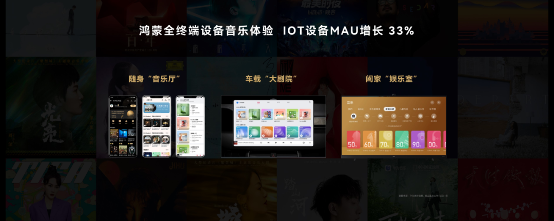 华为音乐之所以能给用户带来全场景的沉浸式聆听体验,是因为在持续拓展内容版权的同时,它也在借助于鸿蒙系统的能力将空间音频带入到更多的设备终端、生活场景应用中,通过端到端全链路产生更多神奇的化学反应。目前,华为音乐已经连接了超过15类终端及应用,包括手机、耳机、平板、音箱、智慧屏等。
