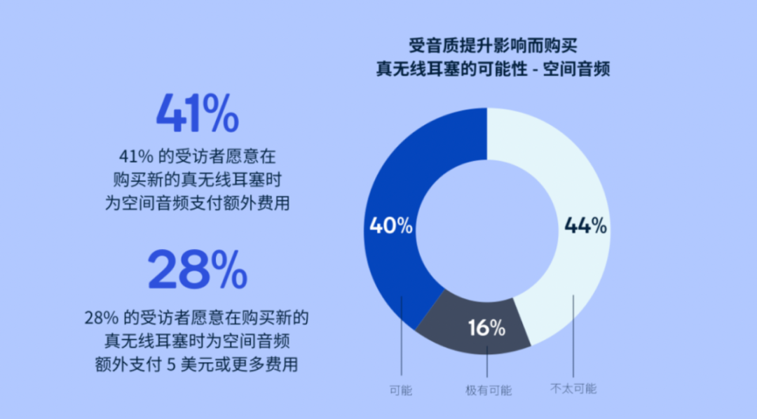 除了空间音频所带来的环绕感以外,声音的高清无损还原对于沉浸感而言也不可获取,如此才能纤毫毕现地捕捉演唱会中每一件乐器的精妙演奏,虚拟世界中的每一丝风声、气息,《原神》等游戏中每个角色走路声音的微妙区别。《2022音频产品使用现状调研报告》显示,58%的受访者表示希望获得高分辨率或无损音质。