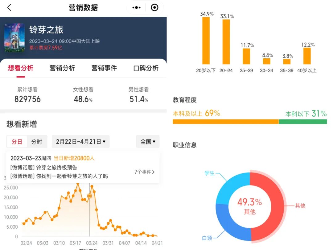 另一部动画电影《铃芽之旅》票房已经破7亿,也证明00后少女的贡献不可小觑。
