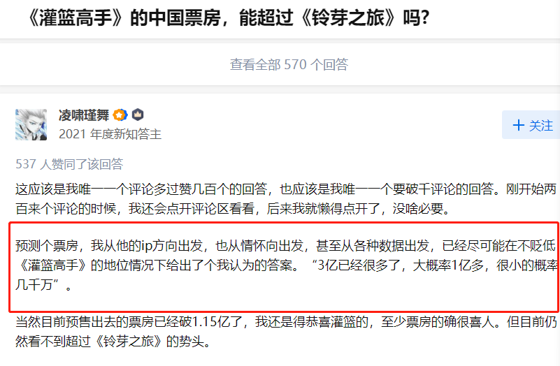 据灯塔专业版数据显示,《灌篮高手》预售总票房突破1.2亿,超过《铃芽之旅》成为中国影史进口动画预售票房冠军,也是近三年第3部平日档预售破亿的影片,其他两部分别为《速度与激情9》《铃芽之旅》。