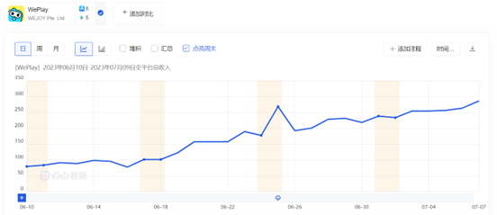 WePlay 在各高线市场收入情况 | 数据来源:点点数据(数据收录日期:2023 年 7 月 8 日)