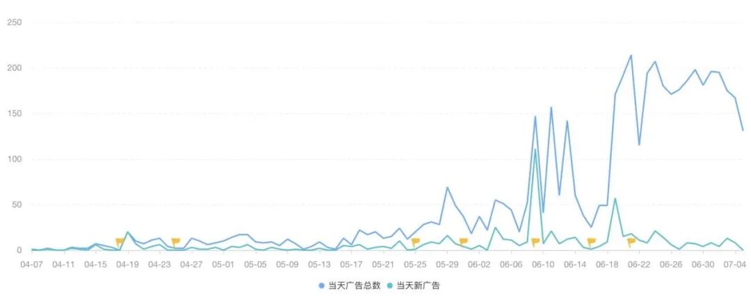 近 90 天 WePlay 广告投放量 |图片来源:App Growing Global