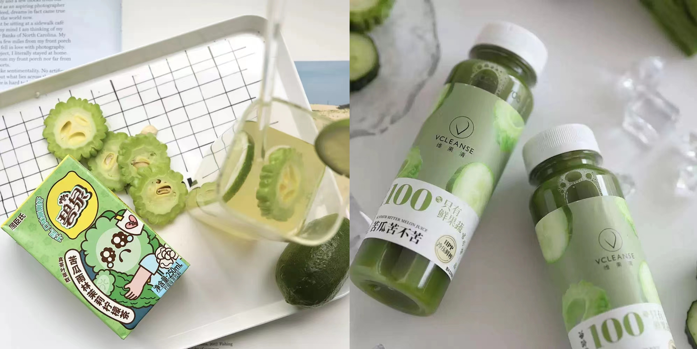 苦瓜具有清热解毒,降燥消暑的作用,屈臣氏旗下品牌「碧泉」上新「苦瓜雨林茉莉柠檬茶」,含NFC真苦瓜浆,搭配香水柠檬,消暑生津,采用100%雨林茉莉真茶叶萃取,无苦涩味。「维果清」推出新品「夏火苦瓜苦不苦」,采用HPP冷压鲜榨工艺,不加一滴水,由苹果、黄瓜、菠菜、苦瓜、柠檬5种果蔬复配,降火健康又好喝。