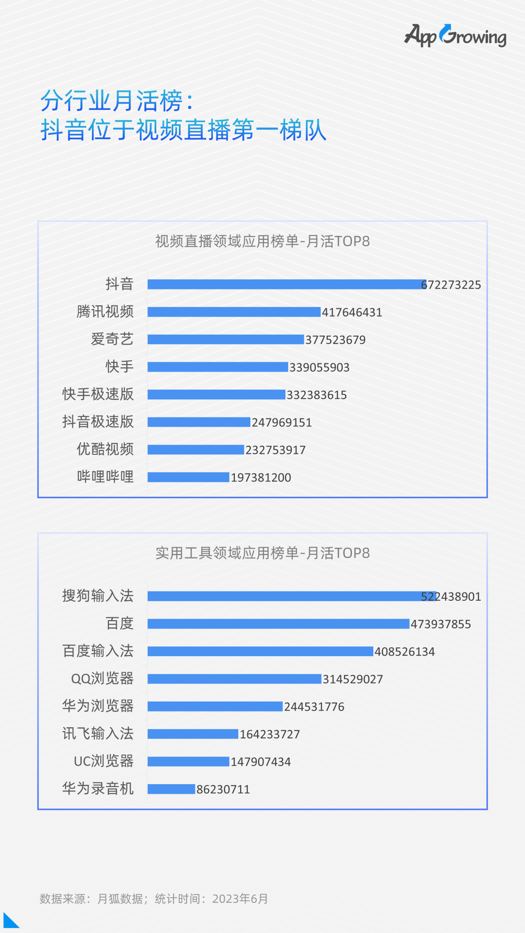 为帮助App广告主洞悉广告营销市场发展态势,打好下半年抢量大战,本次AppGrowing发布的《2023上半年移动广告流量白皮书》将从App买量追踪、流量平台趋势、用户偏好、行为偏好分析等多方面洞察买量市场。同时感谢数据合作方月狐数据&七麦数据的对本次报告数据的支持。