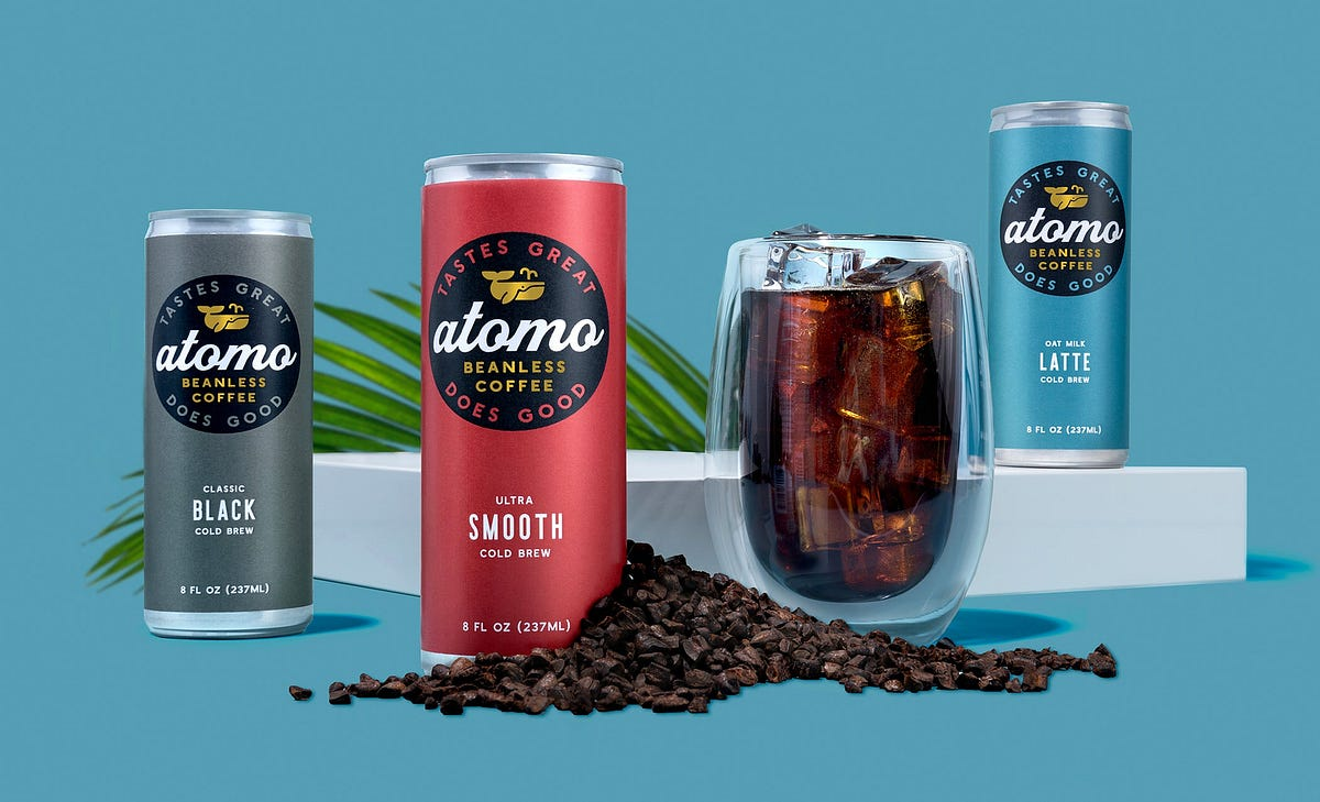 2021年,北美咖啡品牌Atomo推出一款无咖啡豆分子冷酿咖啡,产品采用专利科技将枣、菊苣根、葡萄的加工副产物转化为生咖啡豆中的相同化合物,然后将其烘焙、研磨、冲泡,制成融合了微妙咖啡豆酸苦味、淡可可味、深色水果味与烟熏风味杂糅一体的独特合成咖啡。与传统咖啡相比,产品的碳排放减少 93%、用水量减少 94%,而且具有零咖啡因的健康表现。