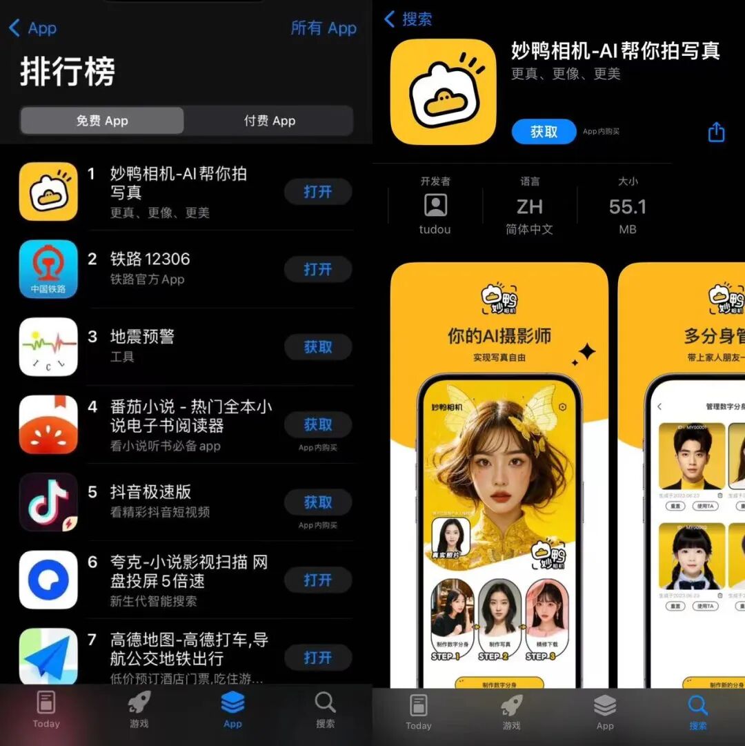 文娱价值官上线一周就在朋友圈引发了刷屏浪潮,小红书、微博等社交平台全面出圈,微信指数单日暴涨40325%,iOS版连续八天登顶App Store免费社交榜……问世刚满一个月的妙鸭相机,成为国内AIGC风口之下第一个爆款应用,让成千上万用户首次体会到“数字分身”的魅力,亲身感受到“未来已来”,AIGC也终于从远在云端的技术概念,落地成为普通人用来展示自我、分享生活的产品服务。