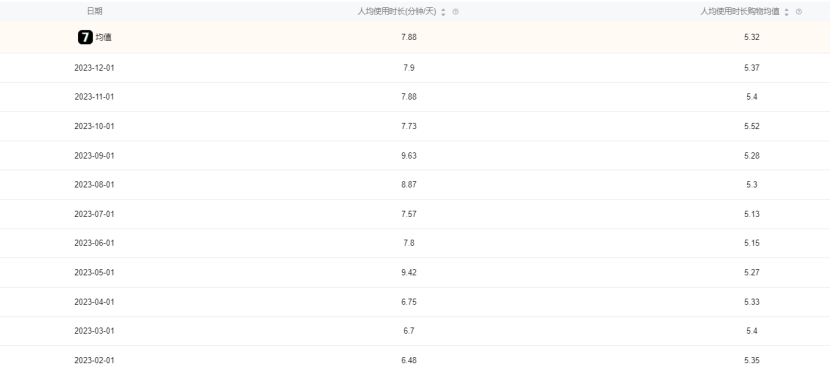 这种量化时间的方式,日本消费者似乎买单了,根据点点数据,7sGood 活跃用户的 App 人均使用时长基本都大于购物类 App 的人均使用时长均值。